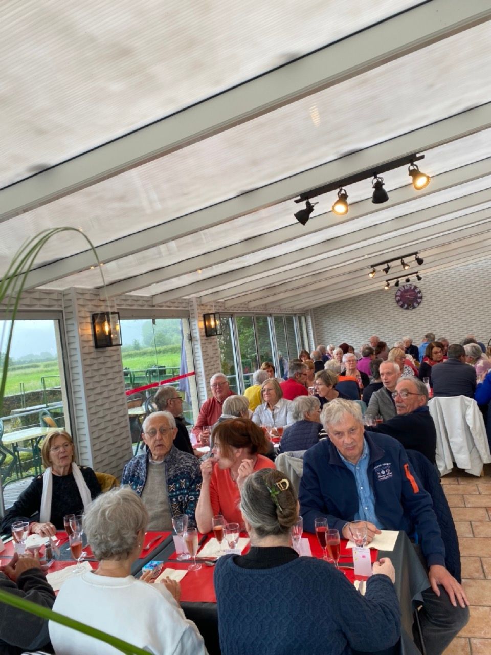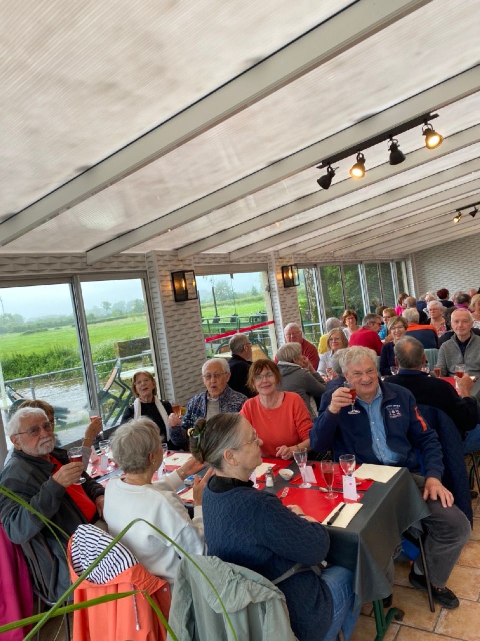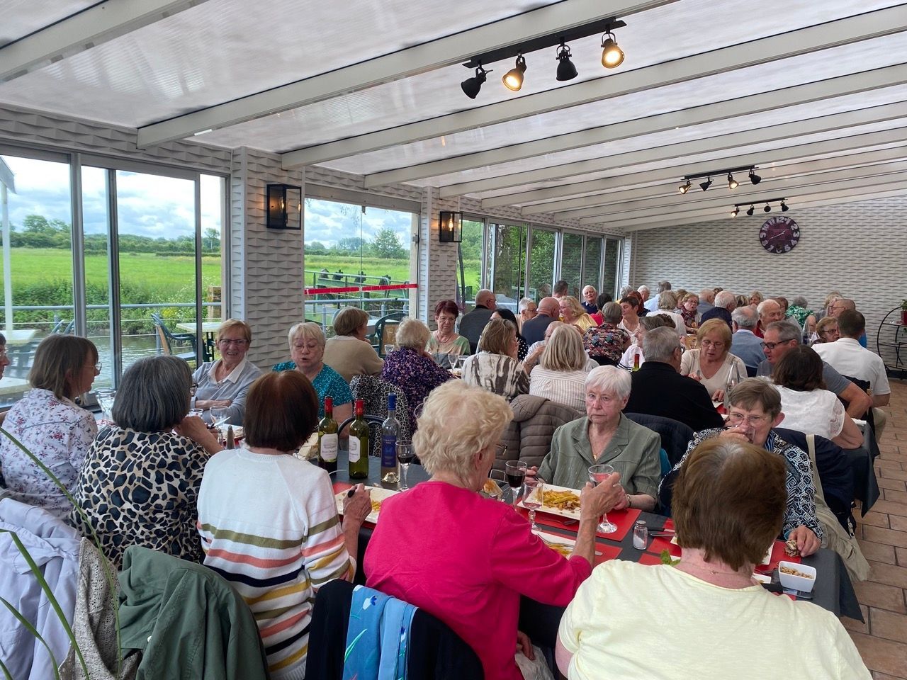 60 personnes en véranda avec vue panoramique sur la rivière et sur le paysage typique de l'Avesnois et 20 personnes dans l'espace bar.