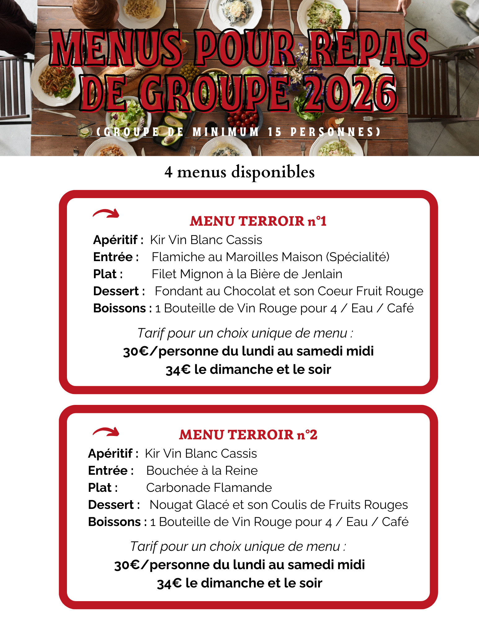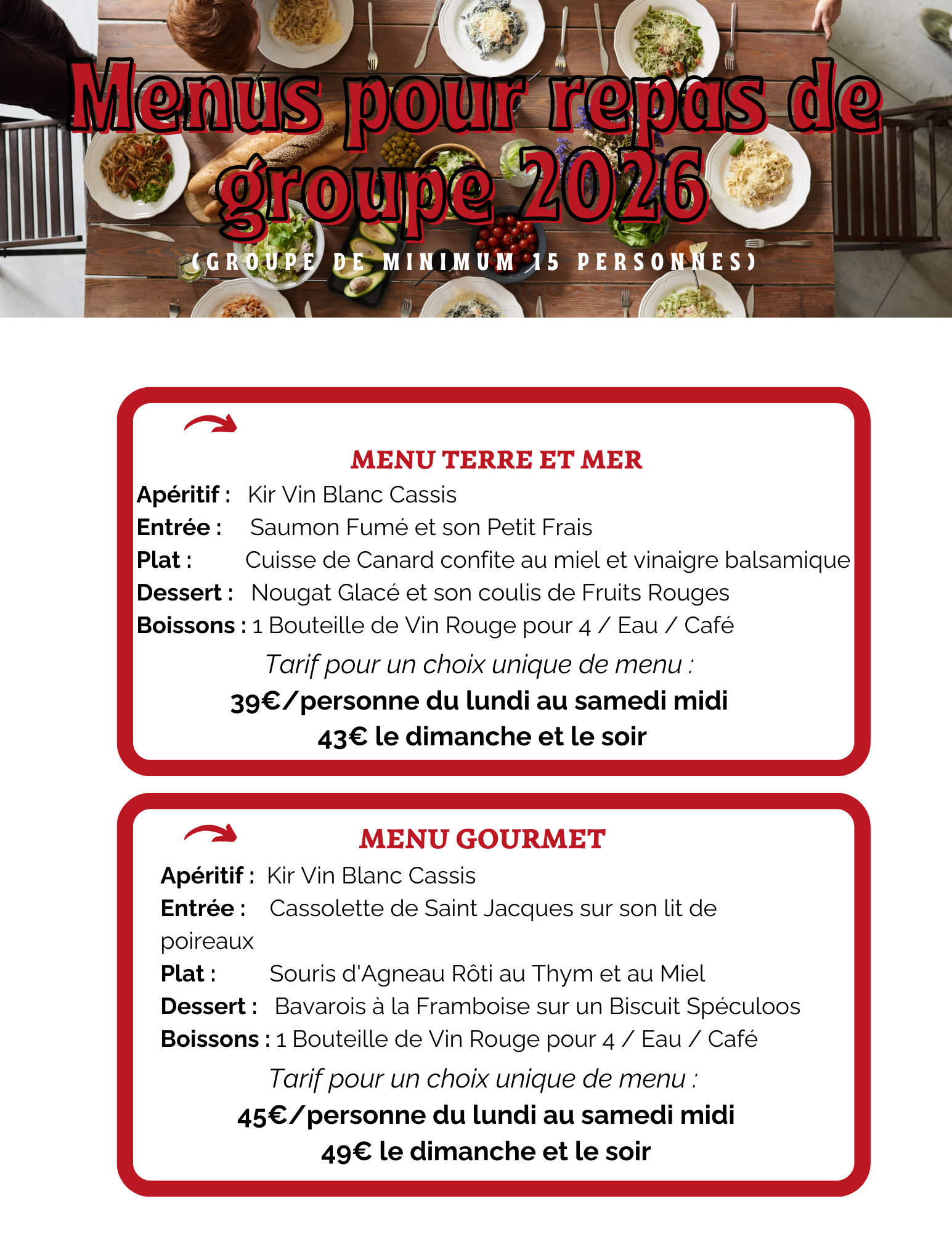 Nous proposons les menus de groupe pour